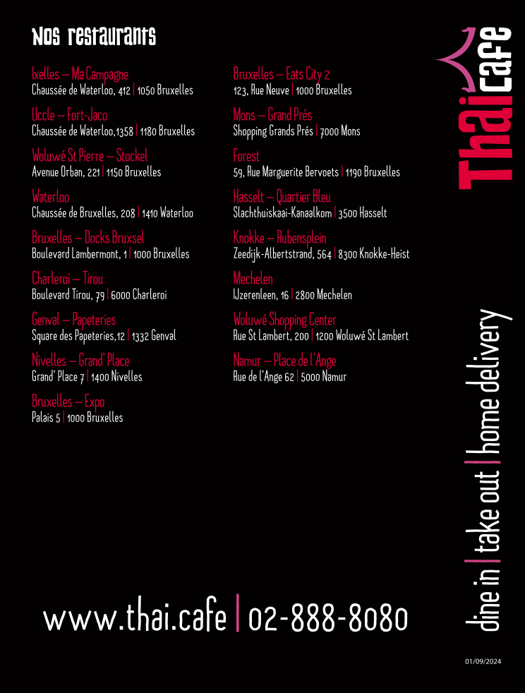 With a charming atmosphere and delectable offerings, Thaï Café is the ideal spot for a memorable meal. Come savor the essence of Thailand, right in the heart of Mons!